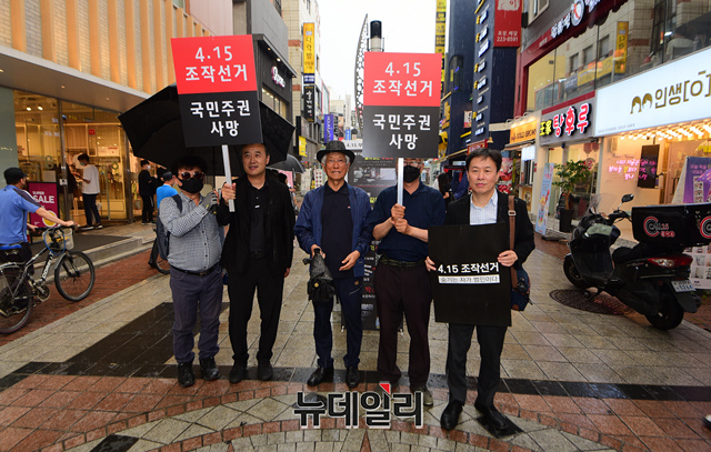 이들은 지난 5월 1일부터 검정색 옷을 입고 전국 각지에서 '4.15 총선 부정 의혹' 규명을 요구하는 집회를 갖고 있다.(충북 청주=이종현 기자)