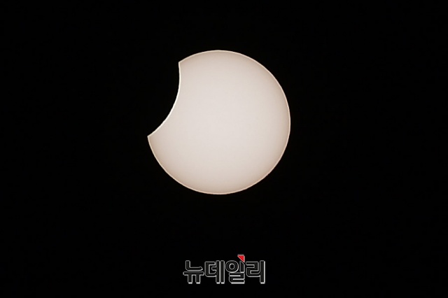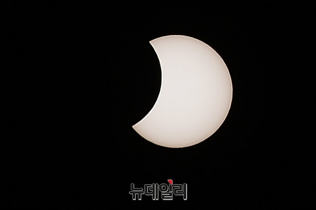 [포토] 달이 해의 일부 가리는 '부분일식' 서울서 관측