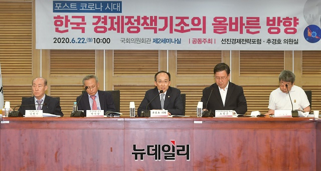 토론회에는 박기성 성신여대 경제학과 교수, 김원식 건국대 경제학과 교수, 오정근 선진경제전략포럼 회장, 조동근 명지대 경제학과 명예교수 등이 발제했다.