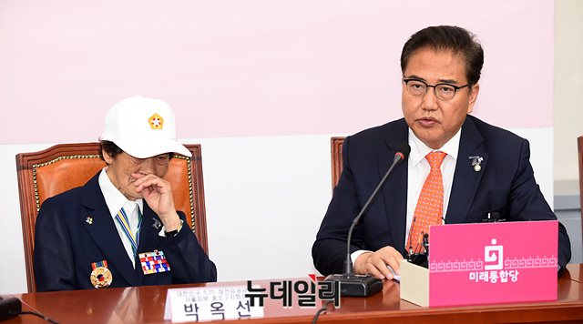 박진 미래통합당 외교안보특위 위원장이 22일 오전 국회에서 열린 비상대책위원회의에서 모두발언을 하고 있다. 이날 김종인 통합당 비상대책위원장은 대한민국 6.25 참전유공자회 류연갑·박옥선 유공자를 초청해 비대위를 가졌다.