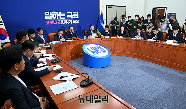 김태년 더불어민주당 원내대표가 22일 오전 국회에서 열린 최고위원회의에서 모두발언을 하고 있다.