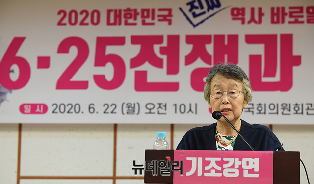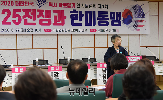 이인호 서울대학교 명예교수(전 러시아대사)가 22일 오전 국회 의원회관에서 열린 6.25전쟁과 한미동맹 토론회에서 기조강연을 하고 있다.