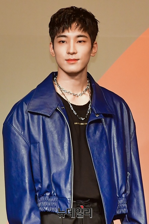 세븐틴 멤버 원우가 22일 오후 서울 강남구 인터컨티넨탈 서울 코엑스에서 열린 세븐틴 미니7집 '헹가래' 발매 기자간담회에서 포토타임을 갖고 있다.