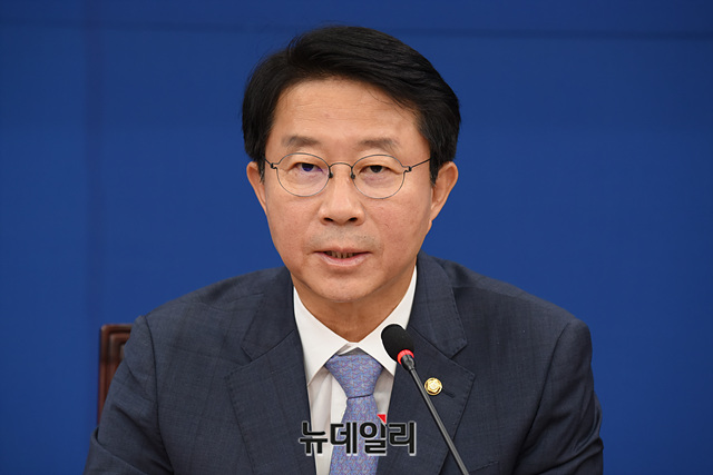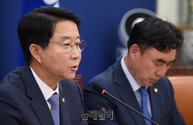 조정식 더불어민주당 정책위의장이 23일 오전 국회에서 열린 원내대책회의에서 모두발언을 하고 있다.