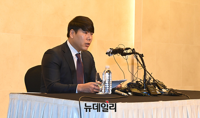 전 메이저리그 강정호가 23일 오후 서울 마포구 스탠포드호텔에서 음주운전 논란 관련 입장을 밝히기 위해 기자회견을 갖고 있다.강정호는 2009년부터 2016년까지 세 차례의 음주운전에 적발된 바 있다. 그는 법원으로부터 '삼진아웃제' 적용을 받아 징역 8개월, 집행유예 2년을 선고받았다.현행 야구규약 '품위손상행위'에 따르면 음주운전 3회 이상 발생시 3년 이상 유기 실격처분 제재를 받는다. 그러나 KBO는 이 조항이 강정호의 음주운전 사건 뒤인 2018년 9월에 개정됐다는 것을 고려해, 징계 수위를 낮춘 바 있다.이날 강정호는 "구단에서 받아준다면 첫해 연봉은 피해자 위해 쓰겠다. 죄송하다"며 사과의 뜻을 밝혔다.