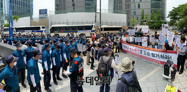 [포토] 위안부소녀상 두고 대치한 시민단체들