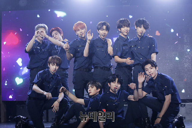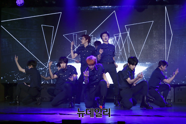 보이그룹 골든차일드(이대열, Y, 이장준, TAG, 배승민, 봉재현, 김지범, 김동현, 홍주찬, 최보민)가 23일 오후 온라인 생중계로 진행된 네 번째 미니앨범 'Take a Leap' 쇼케이스 무대를 선보이고 있다.
