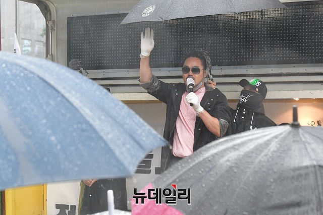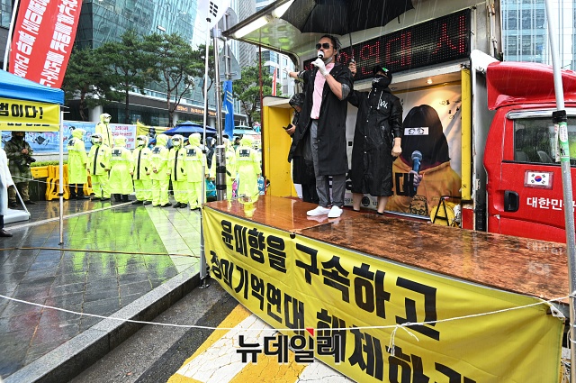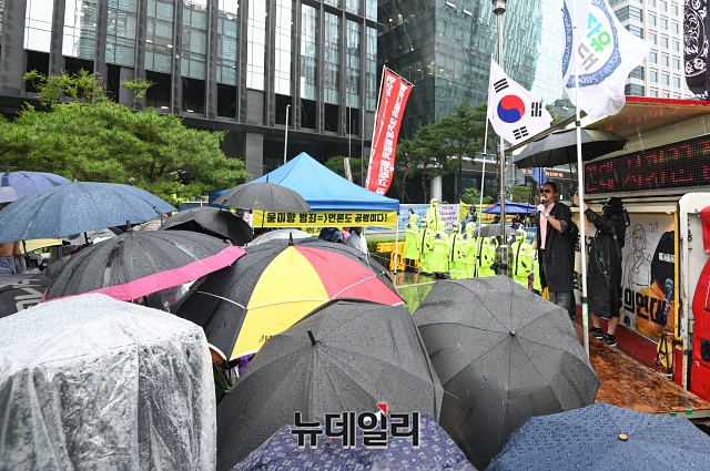 이날 열린 집회에는 많은 비가 왔음에도 불구하고 취재진들과 시민들이 대거 몰렸다.