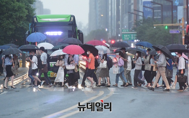 [포토] 장맛비에 우산쓰고 퇴근하는 직장인들