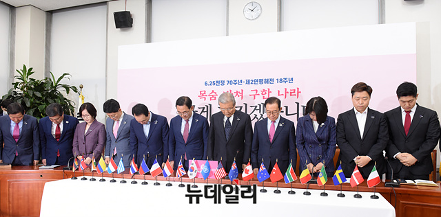 [포토] 6.25전쟁 70주년, 묵념하는 '김종인-주호영-이종배'
