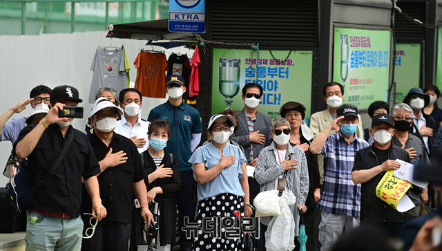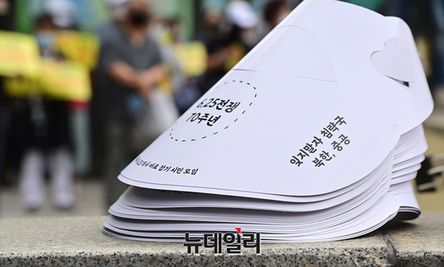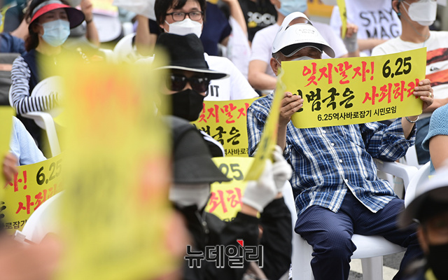 6.25전쟁 70주년 시민대회가 25일 오후 서울 중구 주한 중국대사관 앞에서 6.25역사바로잡기시민모임 주최로 진행되고 있다. 시민대회는 주요 연사의 발언 직후 중국의 사과를 요구하는 가두행진으로 진행될 예정이다.