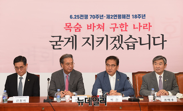 박 위원장은 문재인 대통령과 여당 지도부가 25일 '한반도 종전'을 언급하고 나선것에 대해 "도대체 남북 관계의 현 상황을 얼마나 제대로 파악하는지 알 수 없다"며 "일방적으로 남북공동연락사무소가 폭파된 상황에서 대북 유화론을 들고 나온것은 현실감각이 없는 것"이라고 비판했다.