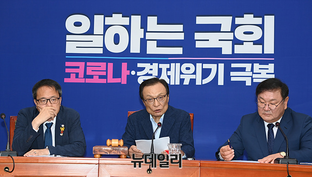 이해찬 더불어민주당 대표가 29일 오전 국회에서 열린 최고위원회의에서 모두발언을 하고 있다.