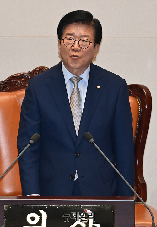 박병석 국회의장이 29일 오후 국회 본회의장에서 열린 제379회국회(임시회) 제6차 본회의에서 발언을 하고 있다. 이날 제1야당인 미래통합당은 불참했다.