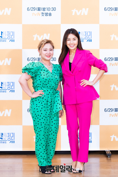 출연배우 윤균상(왼쪽부터), 신애라, 박나래가 29일 온라인으로 진행된 tvN '신박한 정리(연출 김유곤 김상아)' 제작보고회에서 포토타임을 갖고 있다.'신박한 정리'는 나만의 공간인 '집'의 물건을 비우고, 공간에 행복을 더하는 노하우를 함께 나눈다. 또 정리해야 하는 물건들에 얽힌 인생 이야기를 나누며 '비움의 미학'을 찾고 인생을 돌아보며 추억을 나누는 프로그램이다.신애라, 박나래, 윤균상 등이 출연한다. 29일 밤 10시 30분 첫 방송. (사진=tvN)