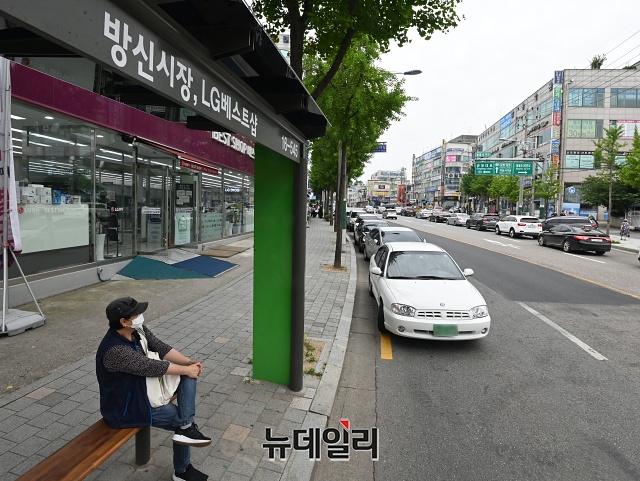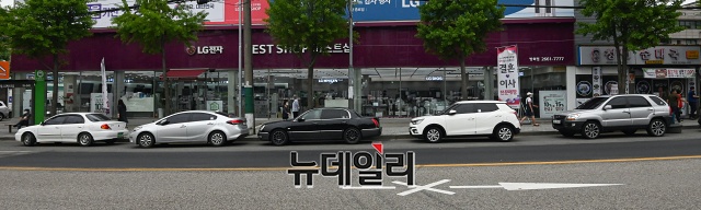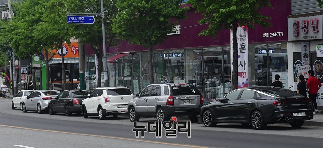 방신전통시장을 찾은 고객들이 주차해 놓은 차량들이 29일 오후 서울 강서구 방신전통시장 인근 도로에 주차돼 있다.