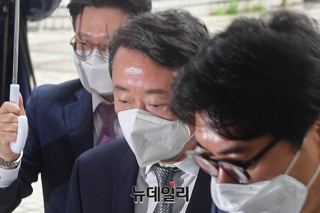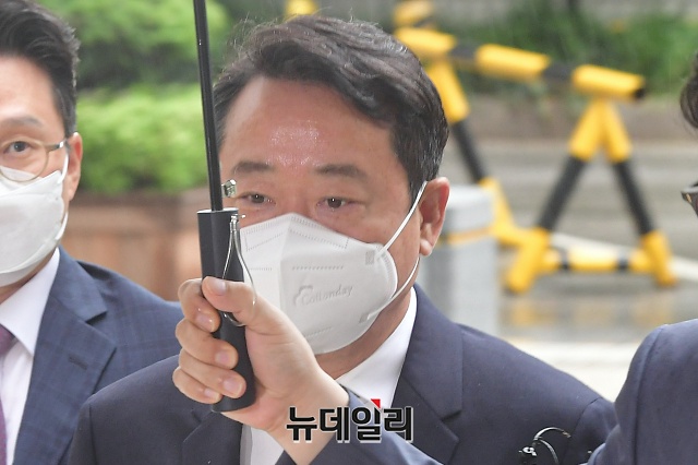 이웅열 전 코오롱그룹 회장(가운데)이 30일 오전 서울 서초구 서울중앙지법으로 영장실질심사를 받기위해 출석하고 있다.
