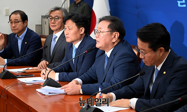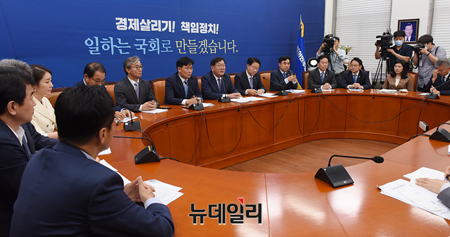 김태년 더불어민주당 원내대표가 30일 오전 국회에서 열린 원내대책회의에서 모두발언을 하고 있다.