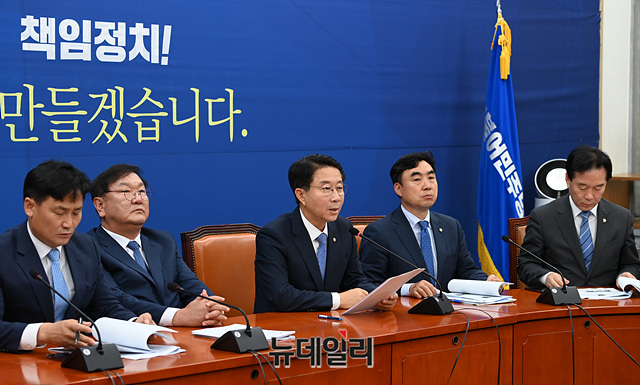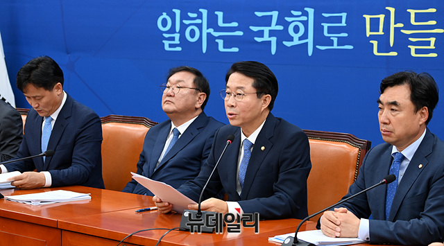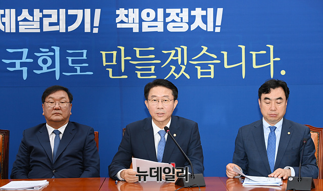 조정식 더불어민주당 정책위의장이 30일 오전 국회에서 열린 원내대책회의에서 모두발언을 하고 있다.