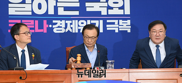 이해찬 더불어민주당 대표가 1일 오전 국회에서 열린 최고위원회의에서 의사진행을 하고 있다.