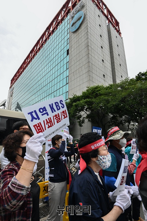 [포토] KBS 본사 앞에서 열린 '지역KBS 폐쇄' 반대 항의 집회
