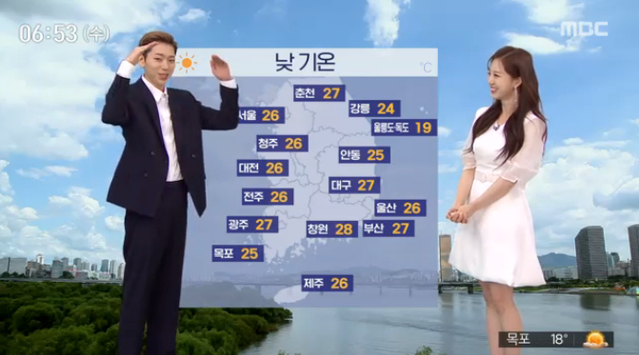 이어 지코는 "오늘도 구름이 조금 끼는 날씨가 되겠고, 기온도 서울 26도로 아주 덥진 않겠습니다"라며 귀에 쏙쏙 들어오는 능수능란한 설명으로 성공적인 기상캐스터 활약을 펼쳤다.