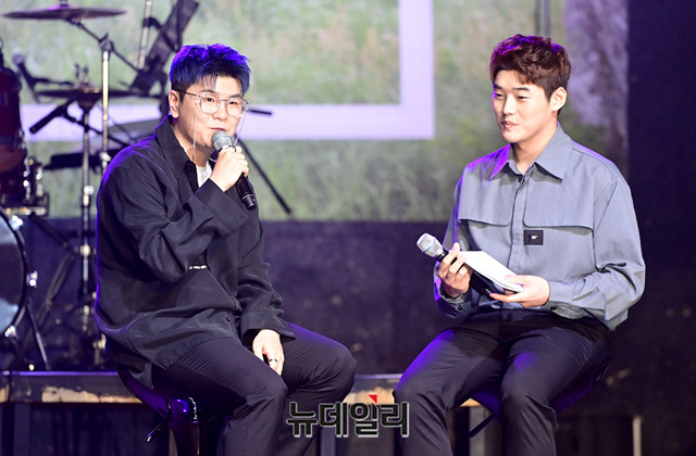 방송인 권혁수가 1일 오후 서울 마포구 하나투어브이홀에서 열린 신용재 첫 번째 정규앨범 'Dear(디어)' 쇼케이스에서 인사말을 하고 있다.