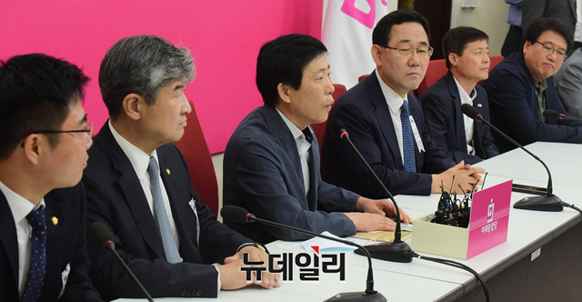 박상학 자유북한운동연합 대표가 1일 오전 국회에서 주호영 미래통합당 원내대표를 만나 면담하기에 앞서 발언을 하고 있다.