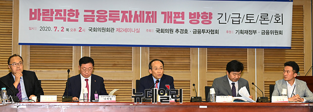 토론회에는 안경봉 국민대 교수, 문성훈 한림대 교수, 황세운 자본시장연구원 연구위원, 이상엽 조세재정연구원 선임연구위원, 김대준 한국투자증권 연구원, 김문건 기획재정부 금융세제과장 등이 참석했다.