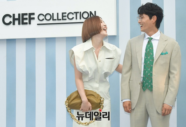 배우 신다은(왼쪽), 디자이너 임성빈이 2일 오후 서울 성동구 레이어57에서 열린 '삼성전자 뉴 셰프컬렉션' 출시 행사에 참석해 포토타임을 갖고 있다.
