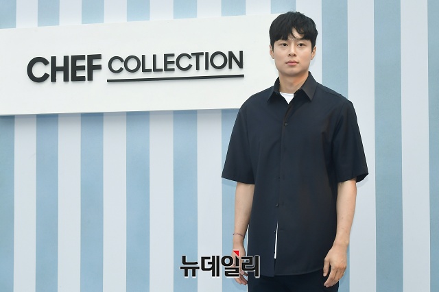 디자이너 김충재가 2일 오후 서울 성동구 레이어57에서 열린 '삼성전자 뉴 셰프컬렉션' 출시 행사에 참석해 포토타임을 갖고 있다.