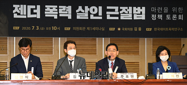 토론회에는 이미정 한국여성정책연구원 선임연구위원, 심재국 변호사, 김한균 한국형사정책연구원 선임연구위원, 전윤정 국회 입법조사처 입법조사관, 김도연 한국데이트폭력연구소 소장, 조윤오 동국대 교수 등이 참석했다.