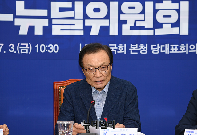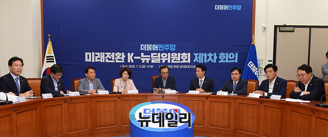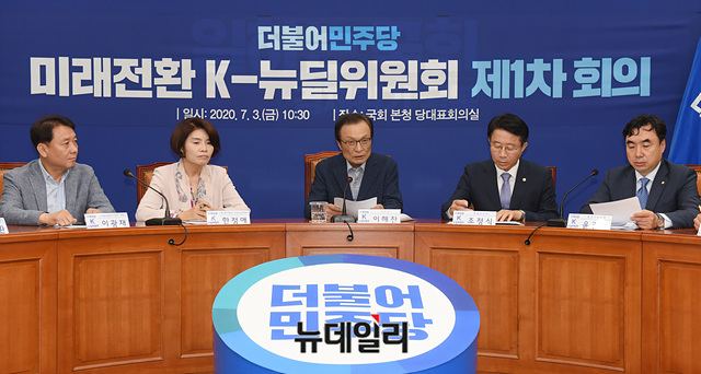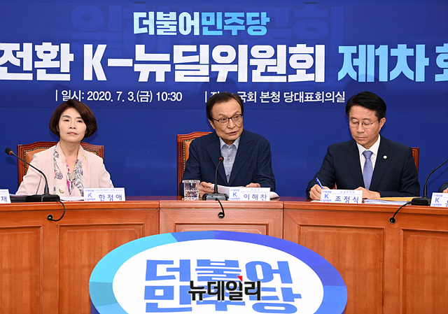 이해찬 더불어민주당 대표가 3일 오전 국회에서 열린 미래전환 K-뉴딜위원회 제1차 회의에서 발언을 하고 있다.