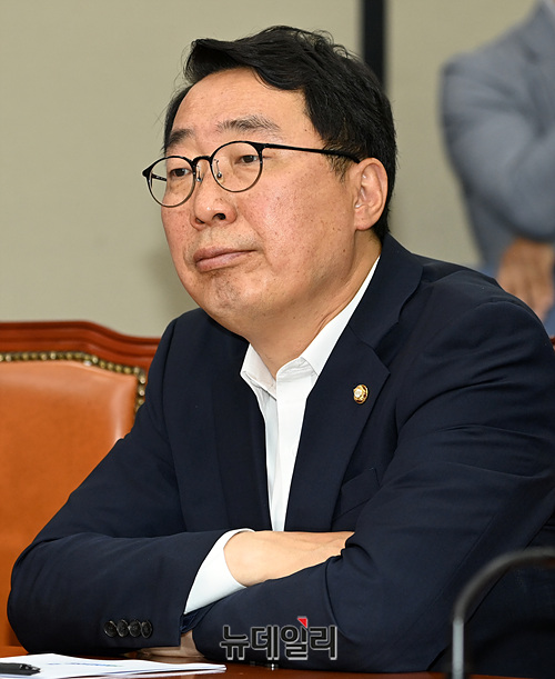 윤영찬 더불어민주당 미래전환 K-뉴딜위원회 디지털뉴딜분과 간사가 3일 오전 국회에서 열린 미래전환 K-뉴딜위원회 제1차 회의에 참석해 자리하고 있다.