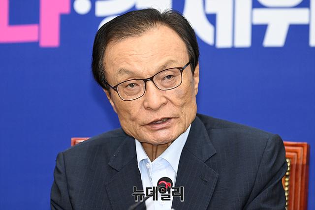 이해찬 더불어민주당 대표가 6일 오전 국회에서 열린 최고위원회의에서 모두발언을 하고 있다.