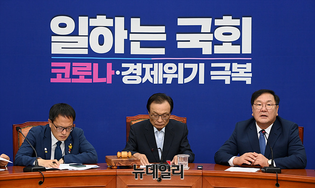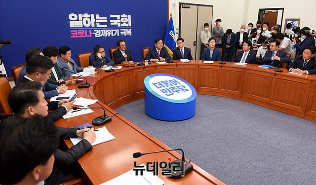 김태년 더불어민주당 원내대표가 6일 오전 국회에서 열린 최고위원회의에서 모두발언을 하고 있다.