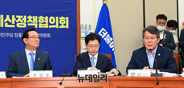변성완 부산시장 권한대행이 6일 오전 국회에서 열린 '더불어민주당-부산·울산·경남 예산정책협의회'에서 인사말을 하고 있다.