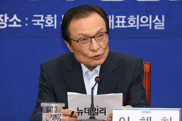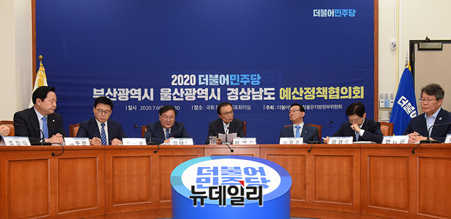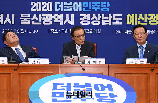 이해찬 더불어민주당 대표가 6일 오전 국회에서 열린 '더불어민주당-부산·울산·경남 예산정책협의회'에서 인사말을 하고 있다.