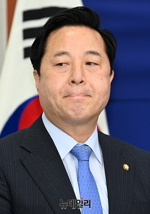 김두관 더불어민주당 의원이 6일 오전 국회에서 열린 '더불어민주당-부산·울산·경남 예산정책협의회'에 참석해 자리하고 있다.