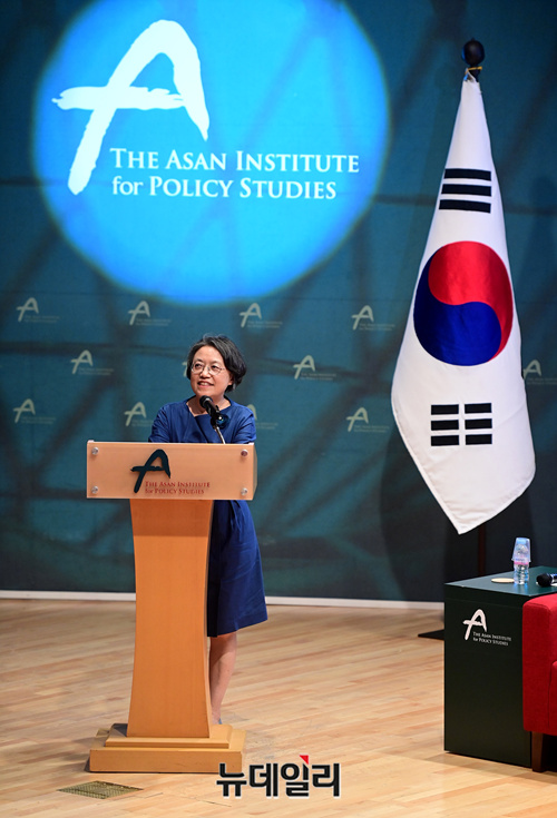 이선이 경희대 교수가 6일 오후 서울 종로구 아산정책연구원 강당에서 열린 '한국미래학회 52주년 창립 및 이한빈 '작은 나라가 사는 길' 복간기념 세미나'에서 인사말을 하고 있다.세미나에는 강석훈 성신여대 교수, 김두환 덕성여대 교수, 모종린 연세대 교수, 서현 서울대 교수, 장훈 중앙대 교수, 전상인 서울대 교수, 한준 연세대 교수 등이 각각 발제를 맡았다.1965년에 출판된 '작은 나라가 사는 길-스위스의 경우'는 최초의 스위스 주재 한국 대사였던 이한빈 대사가 당시 스위스 경제의 주요 현황과 성공적인 경제발전의 주요 요인들을 분석한 책이다.