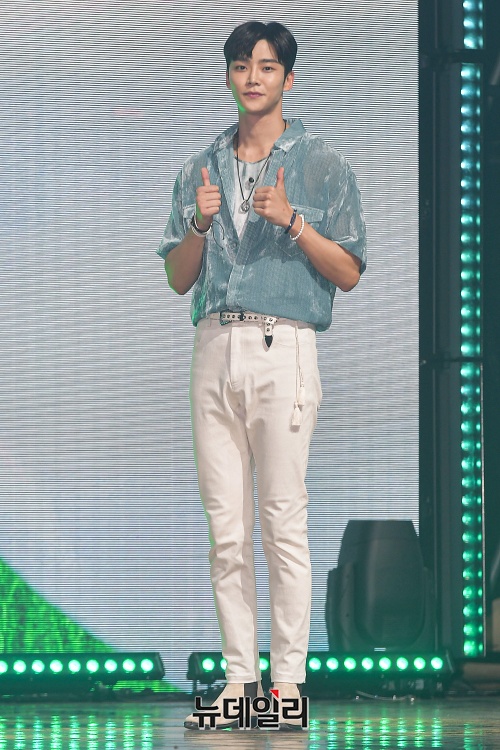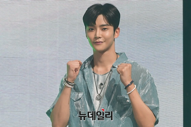 아이돌그룹 SF9(에스에프나인) 멤버 로운이 6일 오후 서울 광진구 예스24 라이브홀에서 열린 미니 8집 '9loryUS(글로리어스)' 쇼케이스에서 포토타임을 갖고 있다.