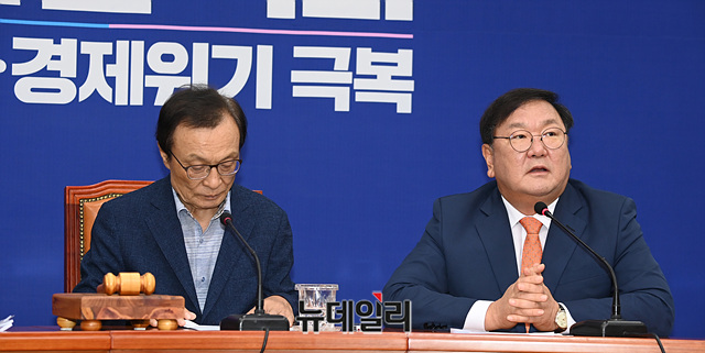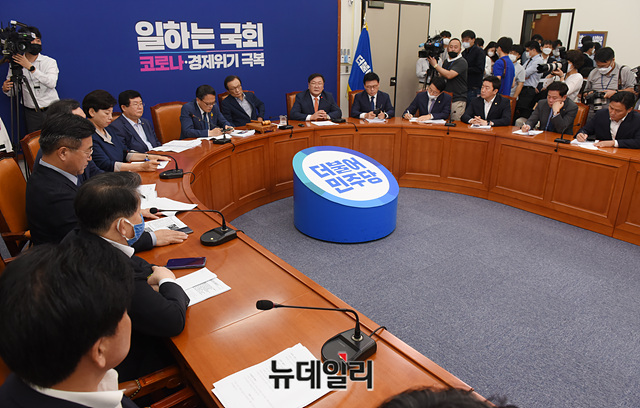 김태년 더불어민주당 원내대표가 8일 오전 국회에서 열린 최고위원회의에서 모두발언을 하고 있다.