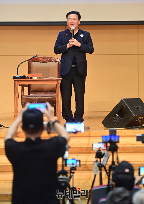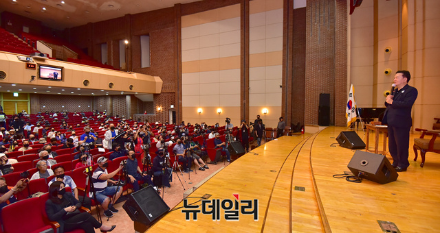 민경욱 전 의원이 8일 오후 서울 종로구 한국교회100주년기념관에서 열린 '4.15 부정선거국민투쟁본부(국투본) 창립총회'에서 상임대표로 선출된 직후 수락연설을 하고 있다.이날 창립총회에서 공동대표에 강용석, 공병호, 김성진, 김세의, 김소연, 김수진, 도태우, 박주현, 서석구, 서향기, 유승수, 이봉규, 한요한, 황규식 등이 선출됐다.운영위원에는 강남훈, 구현서, 김광진, 김수진, 김철영, 김태현, 김희일, 도태우, 민중홍, 박주현, 서향기, 유승수, 이석희, 정동혈 등이 선출됐다.