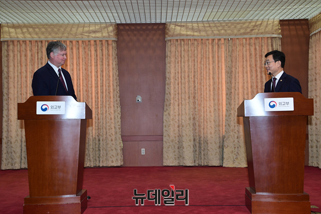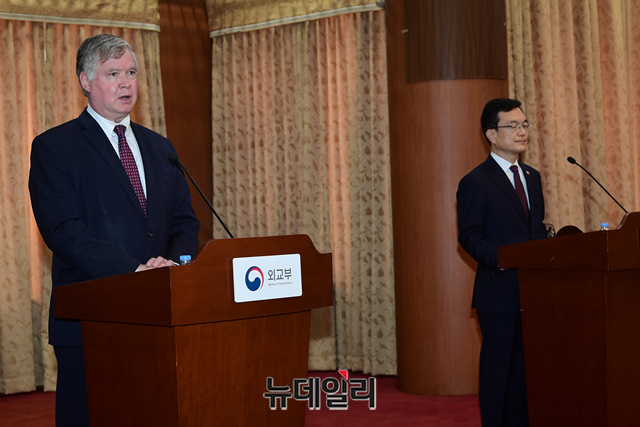 [포토] 공동기자회견 갖는 스티븐 비건-조세영 외교부 차관