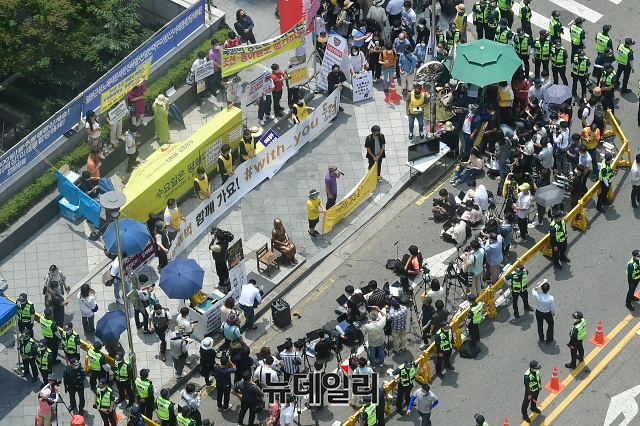 [포토] 소녀상 인근 집회 금지 명령에 기자회견으로 대체한 시민단체