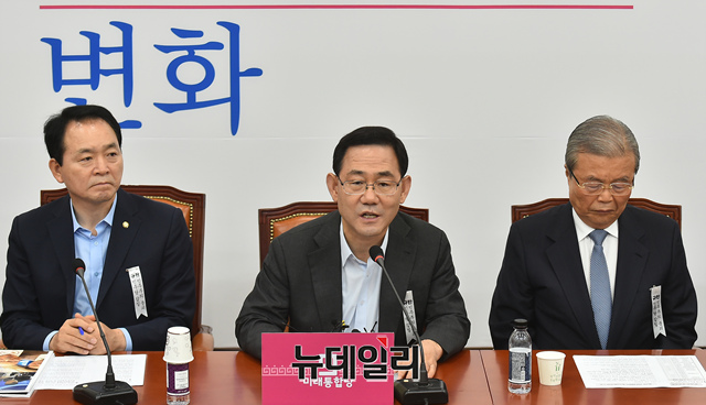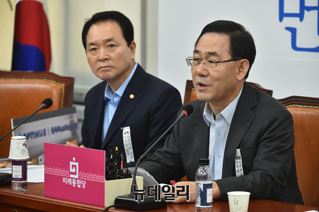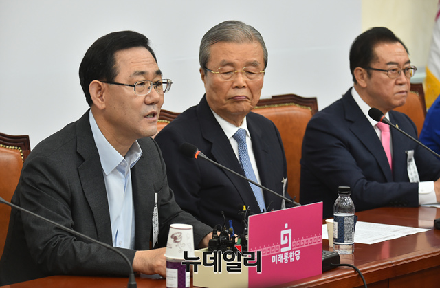 주호영 미래통합당 원내대표가 9일 오전 국회에서 열린 비상대책위원회의에 참석해 모두발언을 하고 있다.