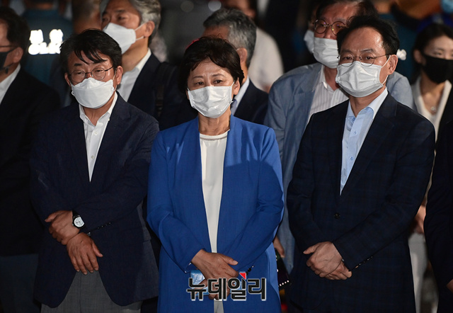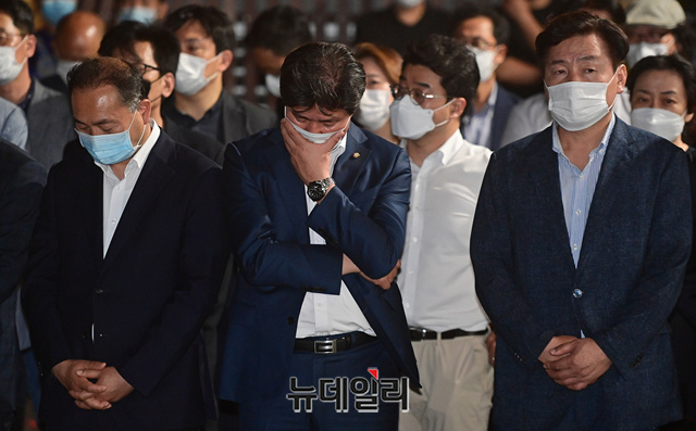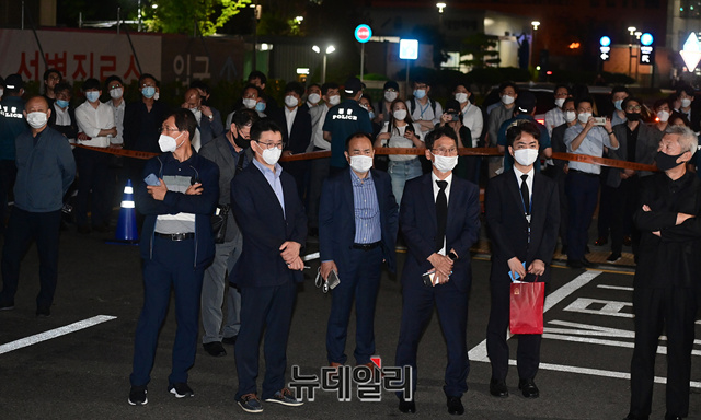 10일 새벽 서울 종로구 북악산 숙정문 인근에서 숨진 채 발견된 박원순 서울시장의 시신이 서울대병원응급실로 이송된다는 소식에 서울시청 관계자들과 일부 지지자들이 집결해 차랑을 기다리고 있다.