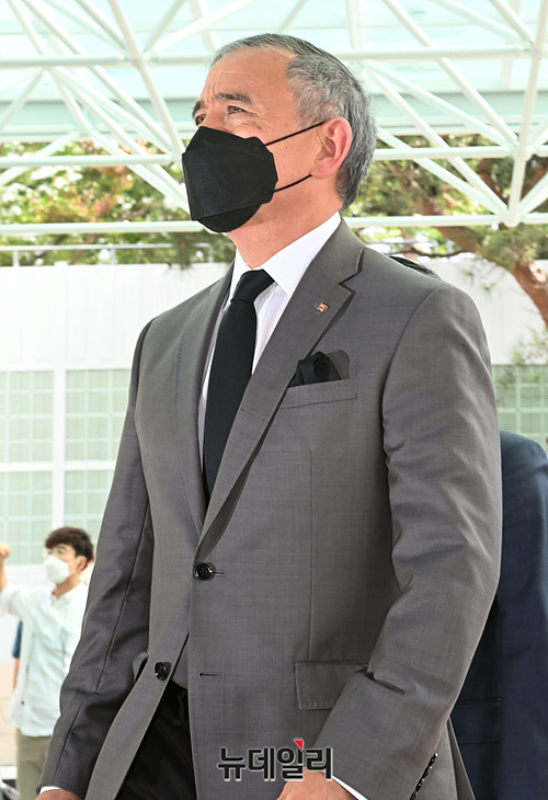 '해리 해리스(Harry Harris)' 주한 미국대사가 10일 오후 서울 종로구 서울대학교병원 장례식장에 마련된 故 박원순 서울시장의 빈소 찾고 있다. 고인의 장례는 사상 처음으로 5일간 서울특별시 장으로 치러진다.