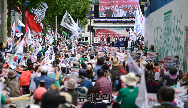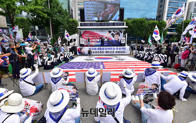 [포토] 朴파기환송 선고, 우리공화당 법원서 대규모 집회