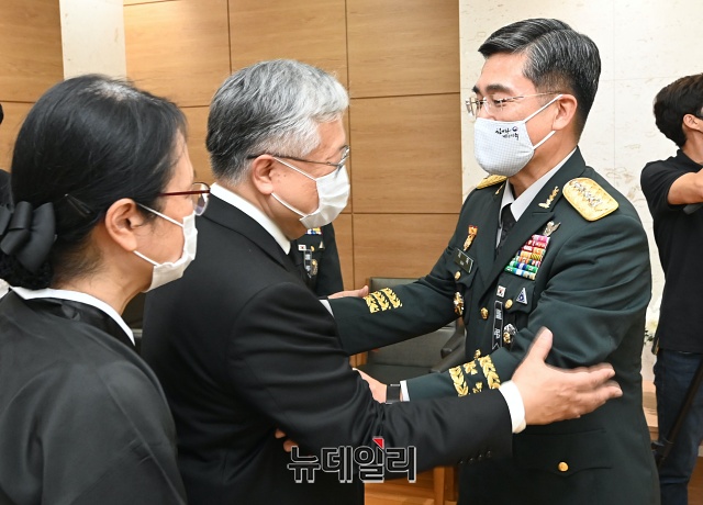 [포토] 백 장군 유가족과 인사하는 서욱 육군참모총장